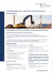 Our firm has therefore negotiated with the main players in the construction insurance market for policies and cover adapted to Monegasque legislation, for both construction site risk and builders’ operations.