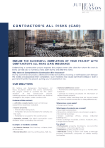 - During the course of the work: Contractor’s All-Risk insurance, Owner’s Civil Liability insurance